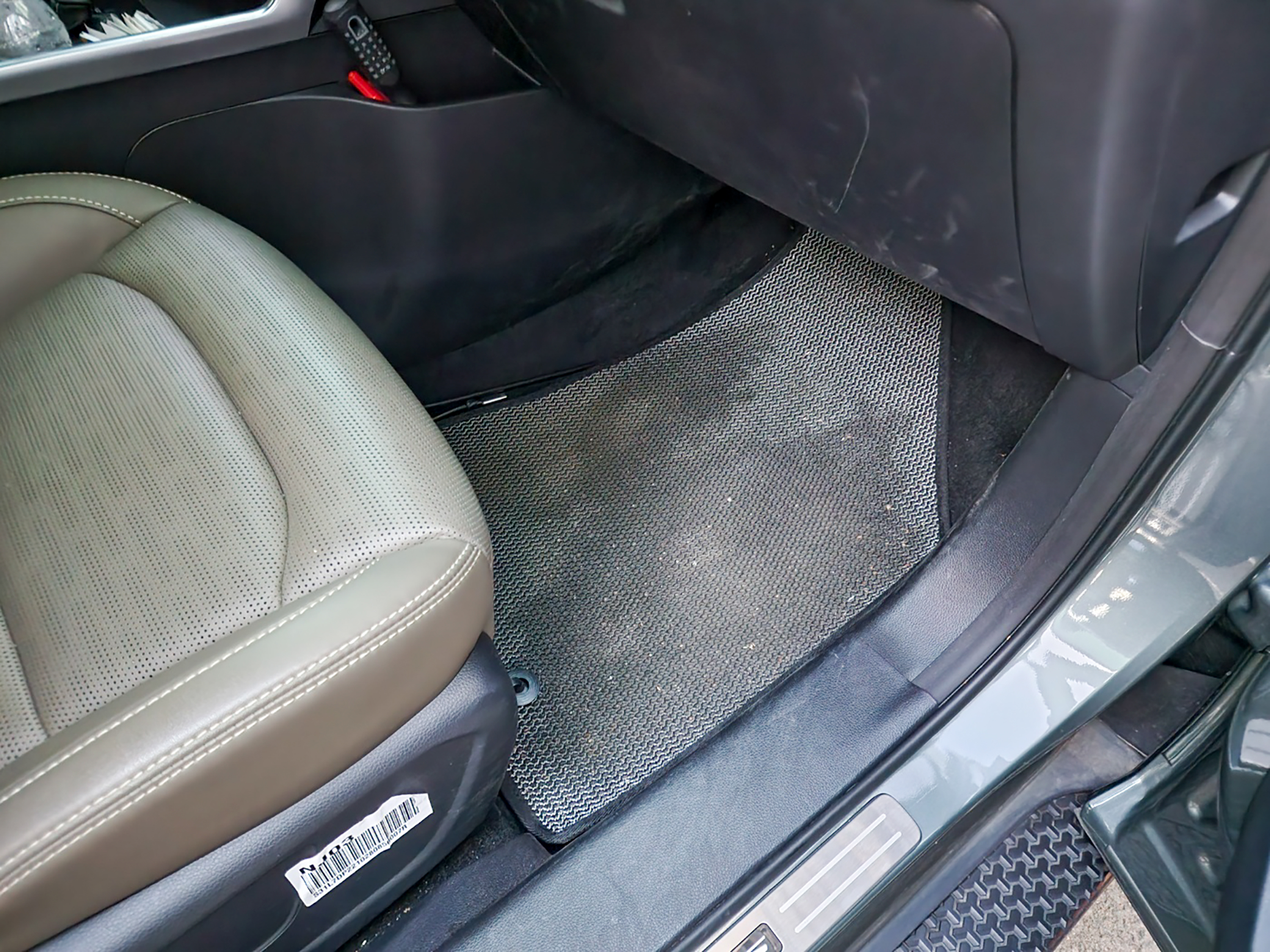 운전석에 비젠티엄TPE카매트를 설치한 모습이다. 사실 차량용 걸레를 가지고 왔으면 흙자국이나 페달 부분도 닦아주고 싶었는데 급히 설치하느라 걸레를 준비하지 않아 그냥 설치했다. 상당히 깔끔한 모습인데 왼쪽발을 올려두는 곳이 완전히 커버되지는 않는 것은 조금 아쉬운 부분이다. 하지만 왼발 위쪽 부분은 오염도가 일반적으로 낮기때문에 큰 문제는 없을 것으로 보인다.