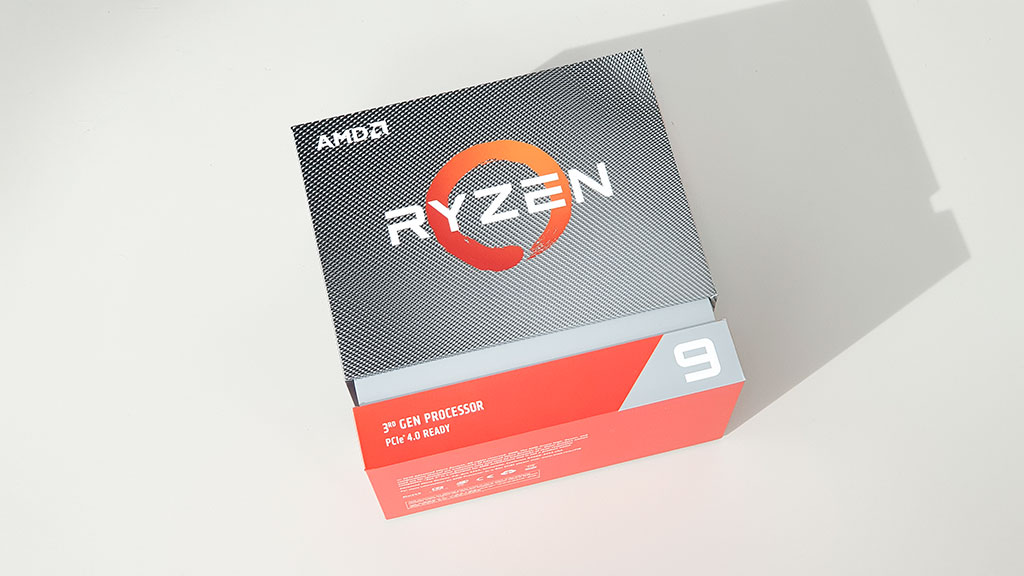 라이젠 9 3950X 박스 이미지이다. 이 각도로만 보면 라이젠 9 3900X와 차이가 없어 보인다. 하지만 쿨러가 동봉되지 않기 때문에 3900X 박스의 절반 크기로 되어있다.