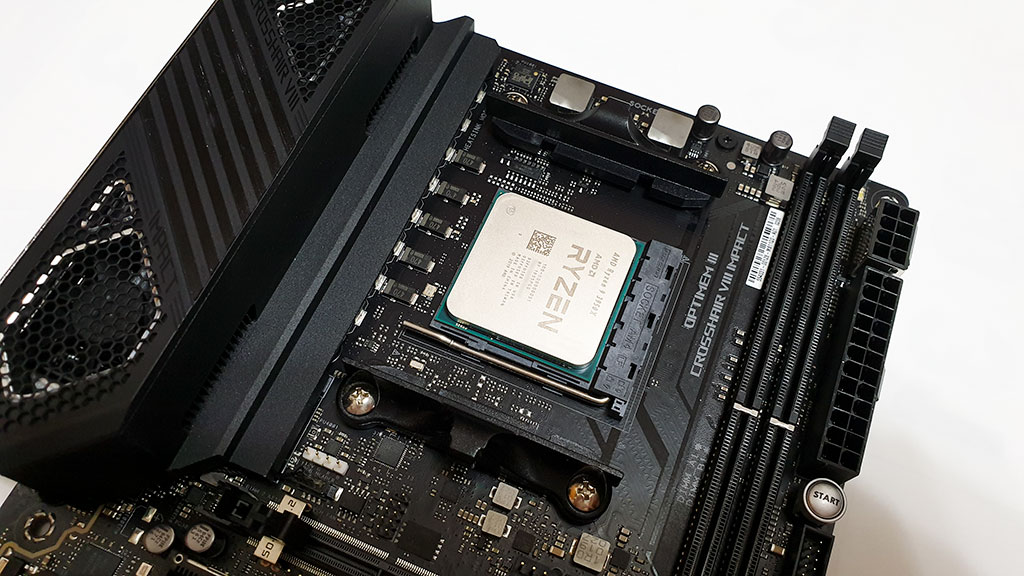 이 제품을 사용해보기 위해 메인보드도 좋은 녀석으로 준비해 보았다. ASUS Crosshair VIII impact 이다. 왠지 Mini-ITX 보드 규격처럼 보이지만 이 메인보드의 규격은 Mini-DTX 이다.