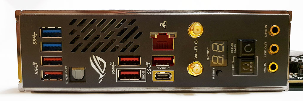 메인보드 뒷면에 풀사이즈의 알루미늄 백플레이트가 탑재되어 있으며, ROG 로고 및 제품명이 양각처리 되어있어 고급스러움을 더했다.