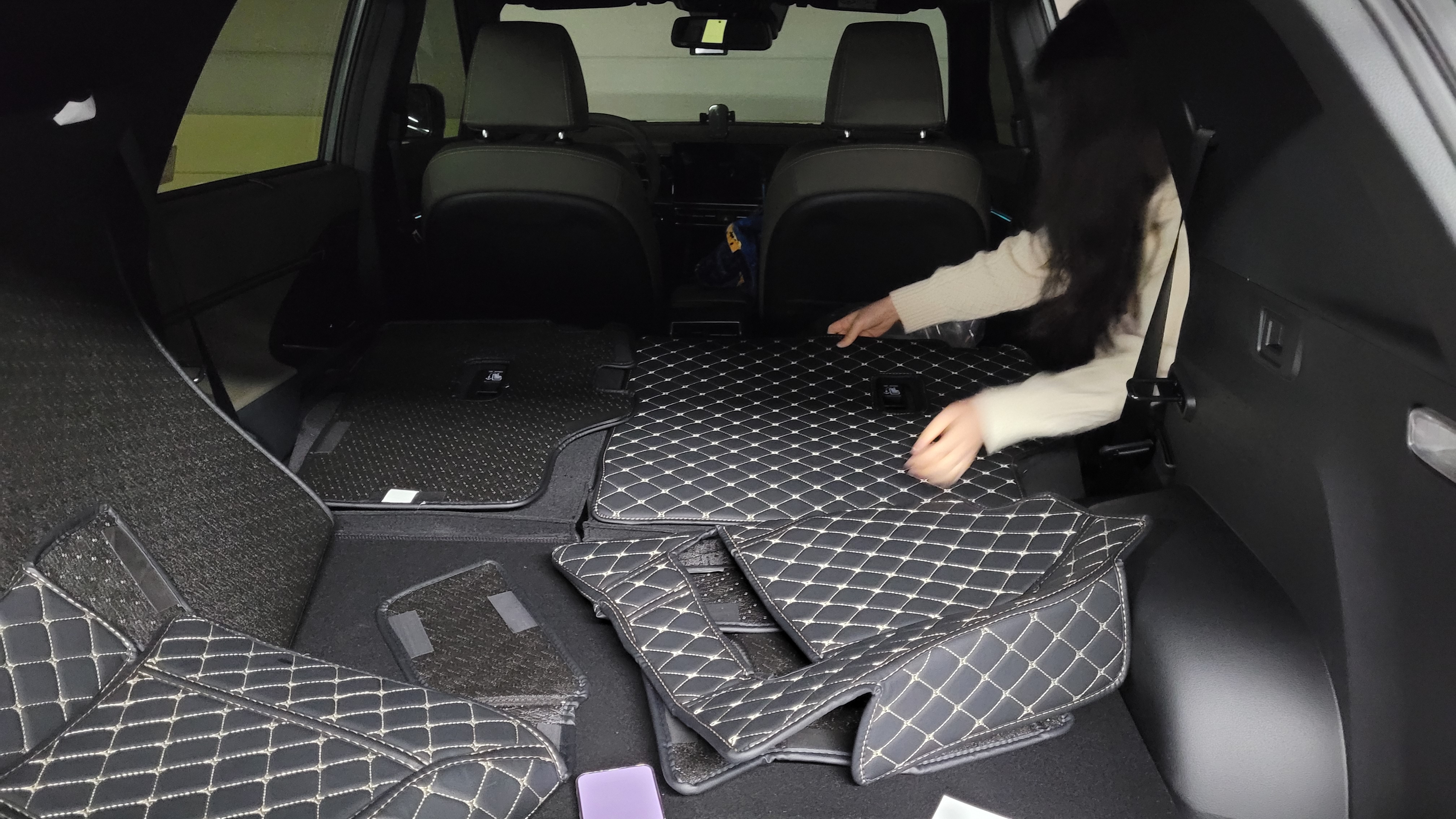 샤오토 트렁크매트 깔기전 대략적으로 자리를 배치해보는 여자친구의 모습...