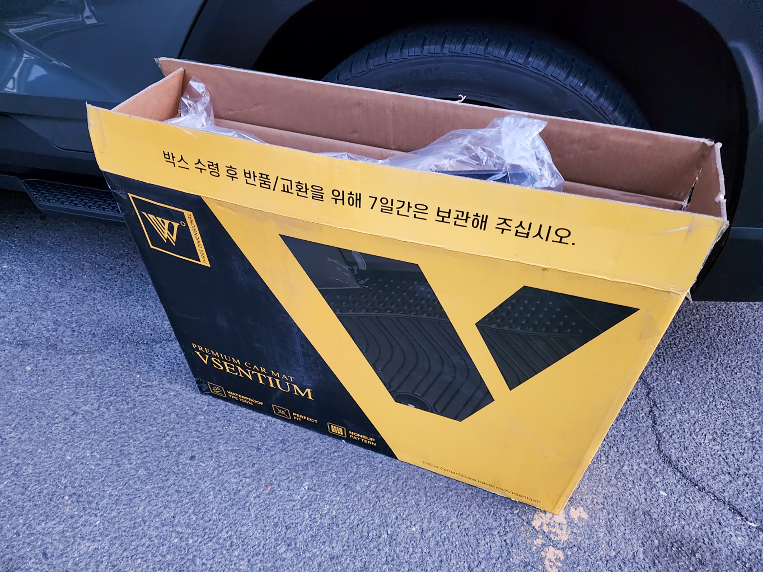 네이버에서 괜찮아 보이는 매트들을 쭉 확인했었는데, 어느 브랜드 제품이나 약간의 아쉬움은 존재하는 듯 했다. 그래도 고르고 골라 카본 패턴으로 변경되고 토레스 사용자들이 바닥면에 딱 맞다고하는 비젠티엄TPE카매트를 선택하게 되었다.