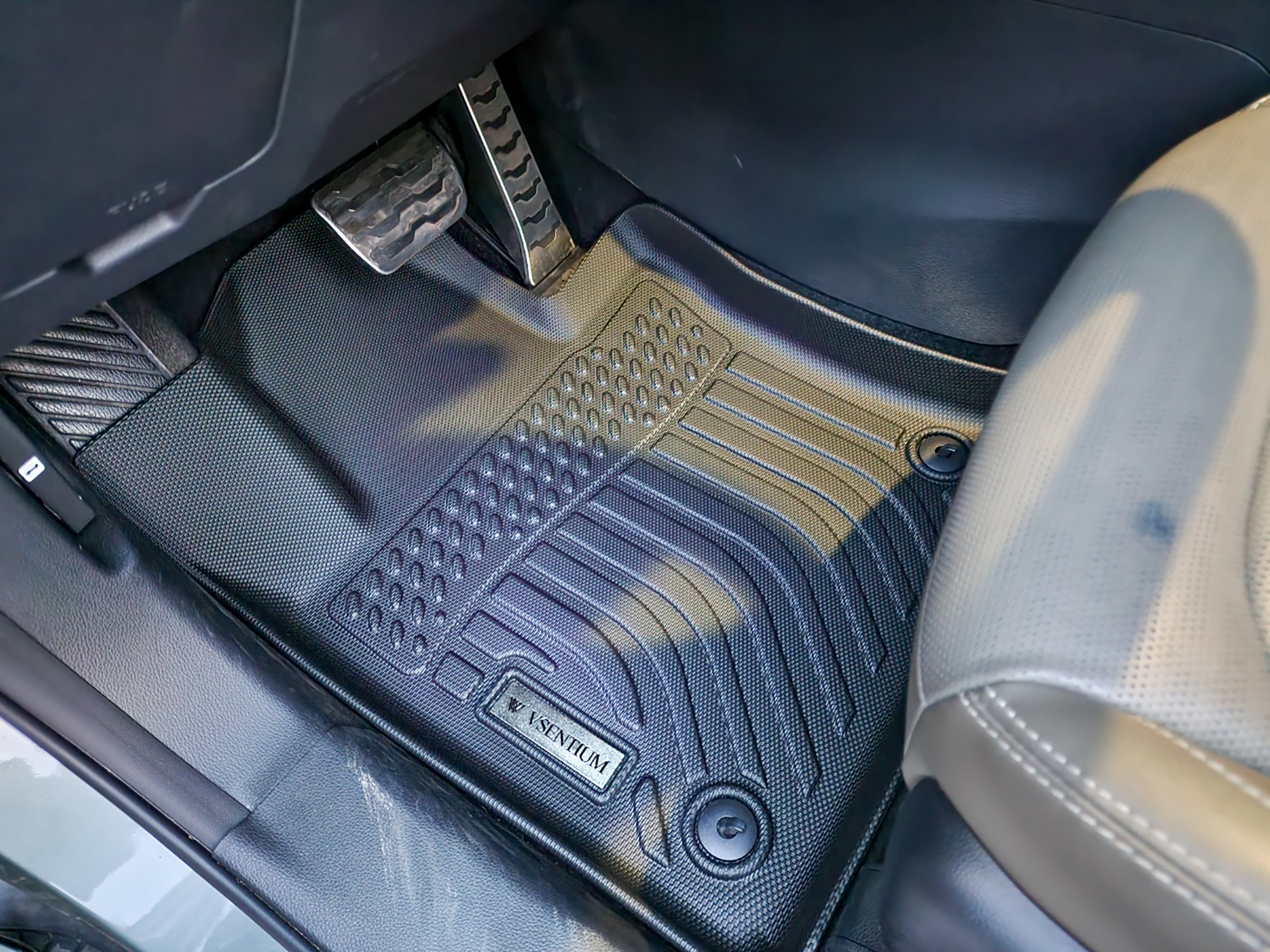 운전석에 비젠티엄TPE카매트를 설치한 모습이다. 사실 차량용 걸레를 가지고 왔으면 흙자국이나 페달 부분도 닦아주고 싶었는데 급히 설치하느라 걸레를 준비하지 않아 그냥 설치했다. 상당히 깔끔한 모습인데 왼쪽발을 올려두는 곳이 완전히 커버되지는 않는 것은 조금 아쉬운 부분이다. 하지만 왼발 위쪽 부분은 오염도가 일반적으로 낮기때문에 큰 문제는 없을 것으로 보인다.